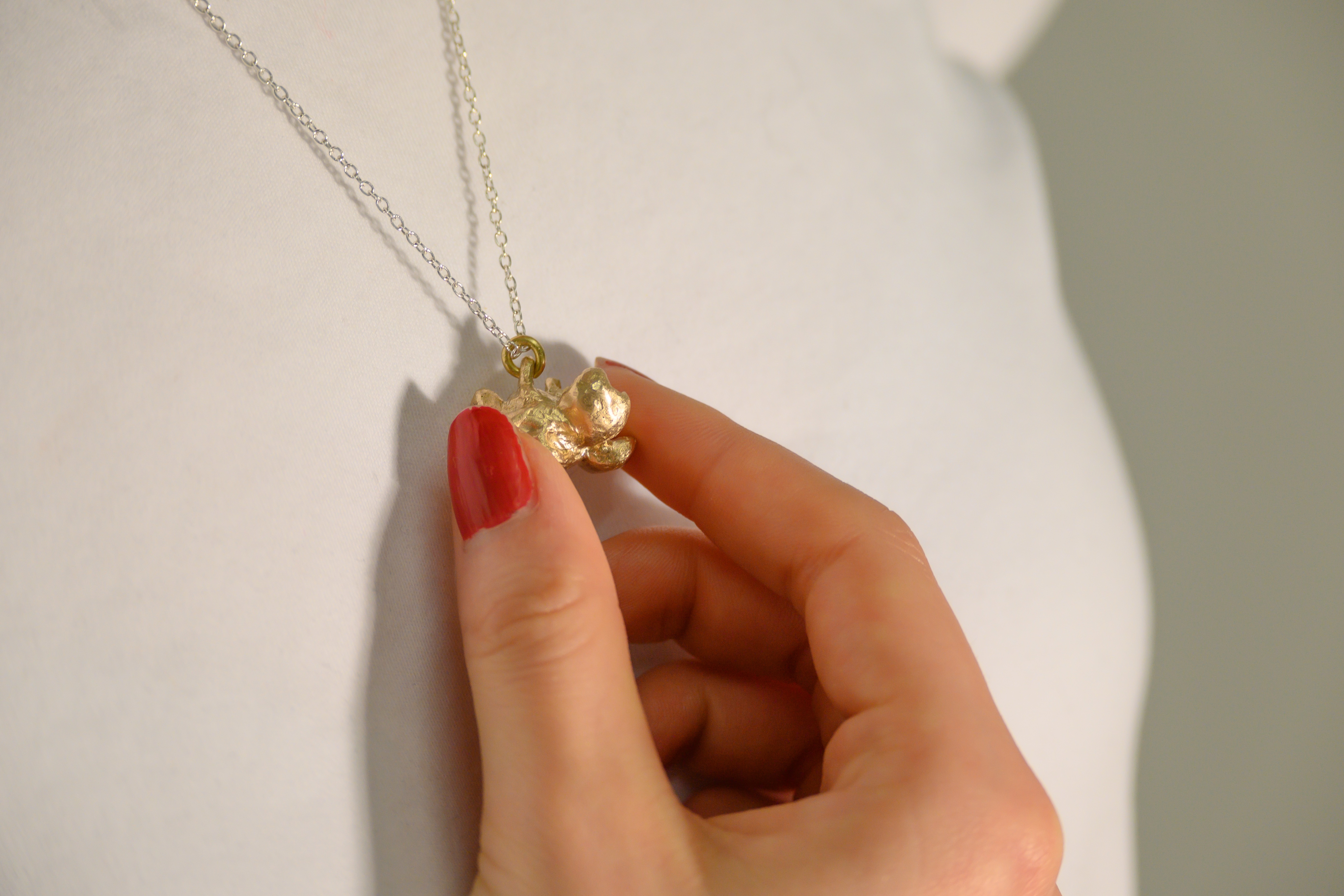 I chose to design a package for a neckless I designed using cast bronze. The pendant was part of a series of relationship-themed jewelers, with the popcorn representing the dating phase of a romance. Each pendant is uniquely cast from a piece of real popcorn.